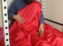 サテンの美学 PART-1 【1.てろてろ赤色サテンの魅惑】 てろてろの赤いサテンで女性を包みます。素肌に貼りつくサテンのツルツル感やサラサラ感に酔いしれます。視界を奪われ何をされるか分からない状況で